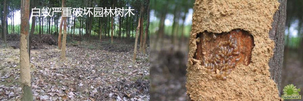 白蟻可以危害甘蔗、花生等農作物,尤其對甘蔗的危害十分嚴重。另外,白蟻對林木、果樹等的危害也具有相當?shù)膹V泛性和嚴重性。